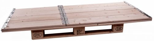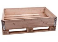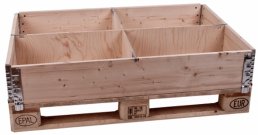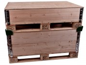 - Stapelecken, zur sicheren Stapelung weiterer Paletten auf der untersten Kiste